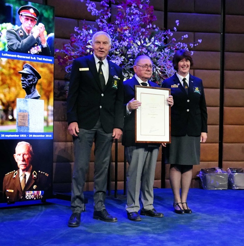 Tijdens de eindejaarsbijeenkomst van het nationaal Veteranen Platform op 10 december 2025 is door de burgemeester Ronald Schneider van de gemeente Barendrecht de oorkonde met het predicaat Koninklijk uitgereikt aan onze voorzitter van de Bond van Wapenbroeders Klaas Orsel. Met de overige Bondsbestuursleden Marianne den Dunnen en Hans Kroes werden de felicitaties in ontvangst genomen.
